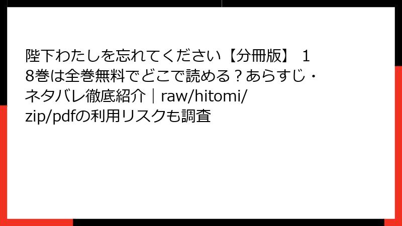 陛下わたしを忘れてください【分冊版】 18巻は全巻無料でどこで読める?あらすじ・ネタバレ徹底紹介|raw/hitomi/zip/pdfの利用リスクも調査