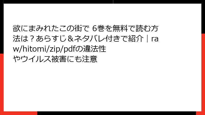 欲にまみれたこの街で 6巻 電子書籍配信サービス