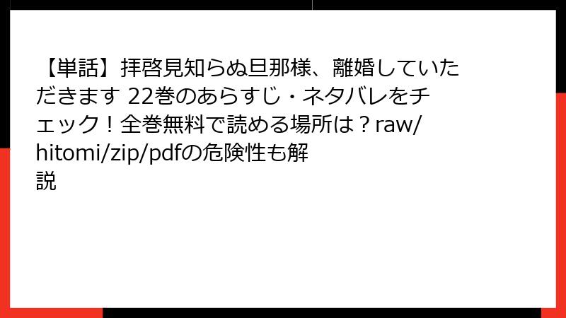 【単話】拝啓見知らぬ旦那様、離婚していただきます 22巻のあらすじ・ネタバレをチェック!全巻無料で読める場所は?raw/hitomi/zip/pdfの危険性も解説