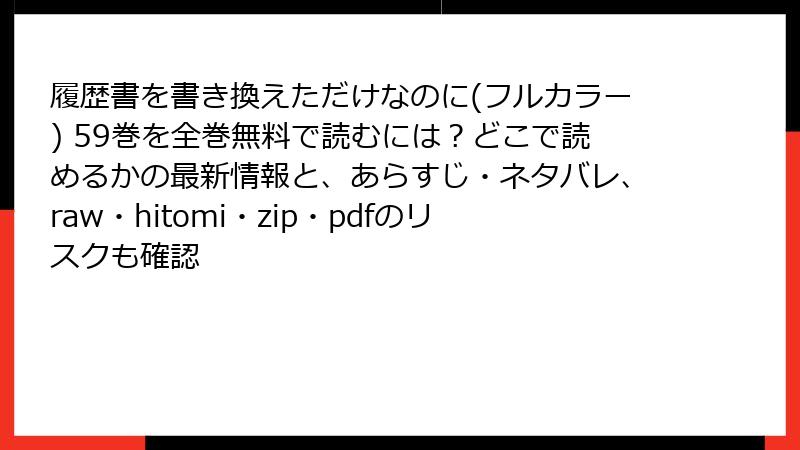 履歴書を書き換えただけなのに(フルカラー) 59巻を全巻無料で読むには?どこで読めるかの最新情報と、あらすじ・ネタバレ、raw・hitomi・zip・pdfのリスクも確認