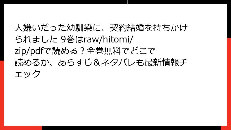 大嫌いだった幼馴染に、契約結婚を持ちかけられました 9巻はraw/hitomi/zip/pdfで読める?全巻無料でどこで読めるか、あらすじ&ネタバレも最新情報チェック