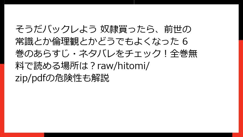 - そうだバックレよう 奴隷買ったら、前世の常識とか倫理観とかどうでもよくなった 6巻 あらすじ