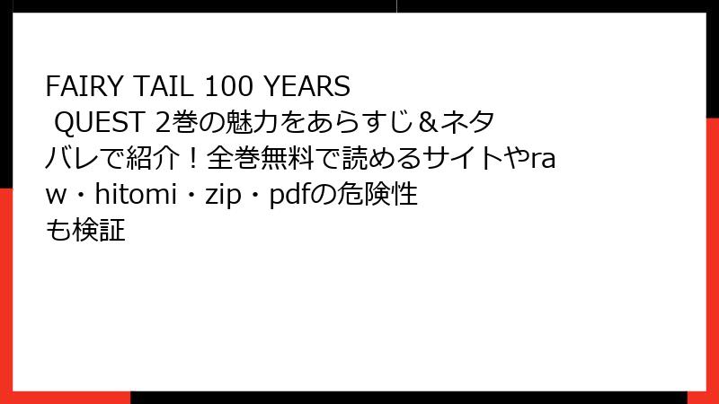 FAIRY TAIL 100 YEARS QUEST 2巻の魅力をあらすじ&ネタバレで紹介!全巻無料で読めるサイトやraw・hitomi・zip・pdfの危険性も検証