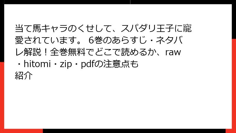 当て馬キャラのくせして、スパダリ王子に寵愛されています。 6巻のあらすじ・ネタバレ解説!全巻無料でどこで読めるか、raw・hitomi・zip・pdfの注意点も紹介
