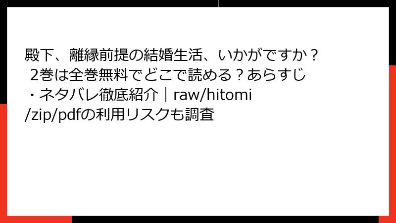 殿下、離縁前提の結婚生活、いかがですか? 2巻は全巻無料でどこで読める?あらすじ・ネタバレ徹底紹介|raw/hitomi/zip/pdfの利用リスクも調査