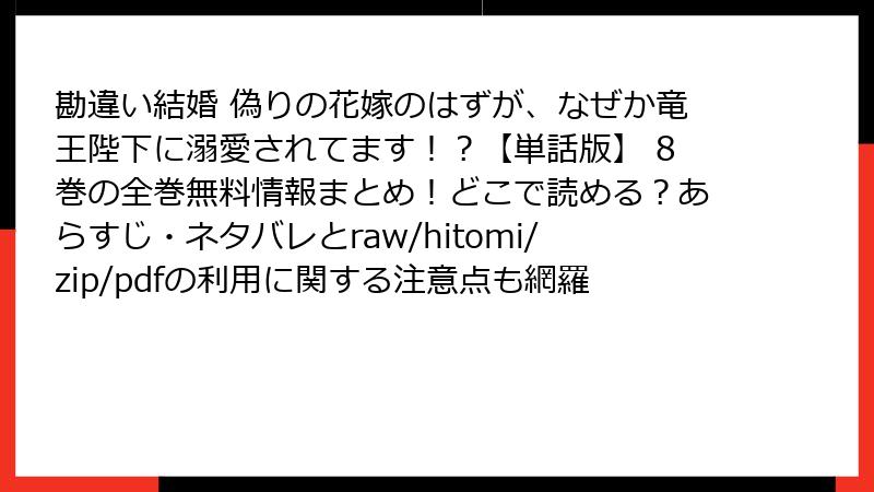 勘違い結婚 偽りの花嫁のはずが、なぜか竜王陛下に溺愛されてます!?【単話版】 8巻の全巻無料情報まとめ!どこで読める?あらすじ・ネタバレとraw/hitomi/zip/pdfの利用に関する注意点も網羅