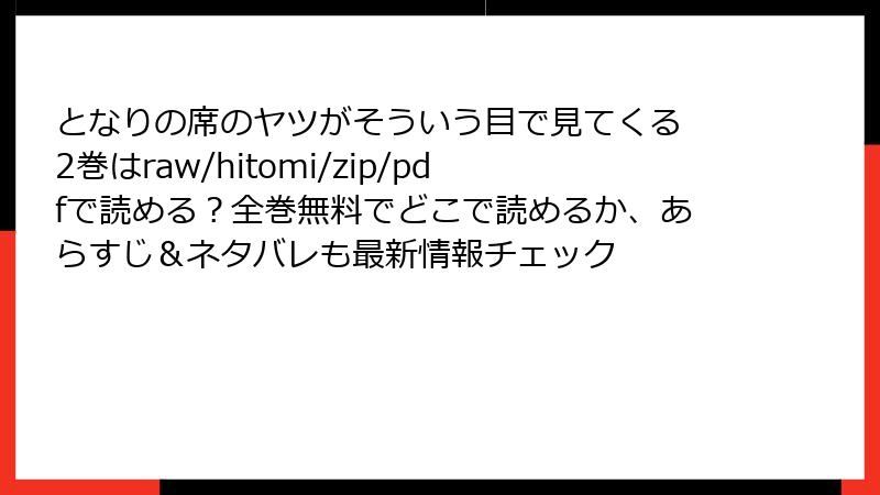 となりの席のヤツがそういう目で見てくる 2巻はraw/hitomi/zip/pdfで読める?全巻無料でどこで読めるか、あらすじ&ネタバレも最新情報チェック