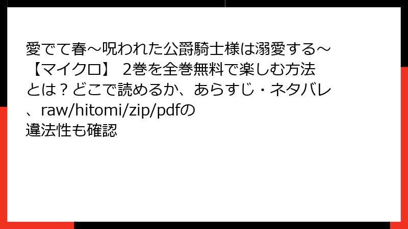 愛でて春~呪われた公爵騎士様は溺愛する~【マイクロ】 2巻を全巻無料で楽しむ方法とは?どこで読めるか、あらすじ・ネタバレ、raw/hitomi/zip/pdfの違法性も確認