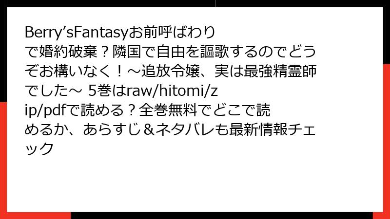Berry’sFantasyお前呼ばわりで婚約破棄?隣国で自由を謳歌するのでどうぞお構いなく!~追放令嬢、実は最強精霊師でした~ 5巻はraw/hitomi/zip/pdfで読める?全巻無料でどこで読めるか、あらすじ&ネタバレも最新情報チェック