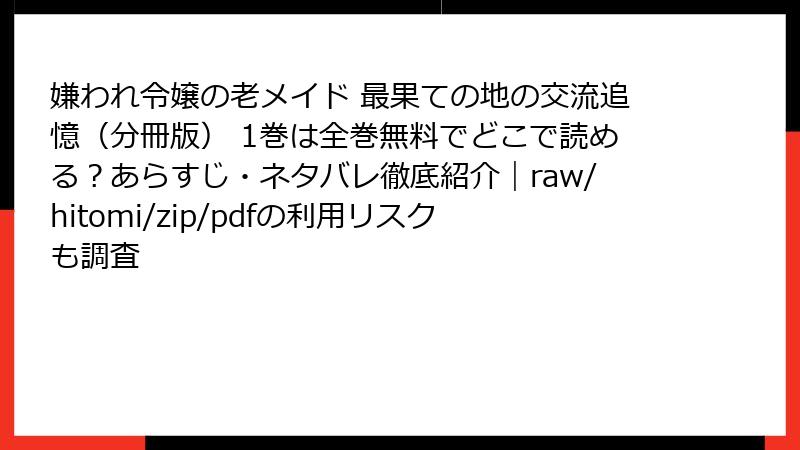 嫌われ令嬢の老メイド 最果ての地の交流追憶(分冊版) 1巻は全巻無料でどこで読める?あらすじ・ネタバレ徹底紹介|raw/hitomi/zip/pdfの利用リスクも調査