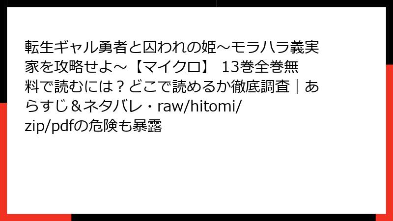 - 転生ギャル勇者と囚われの姫~モラハラ義実家を攻略せよ~【マイクロ】 13巻 海賊版サイトで読むリスク