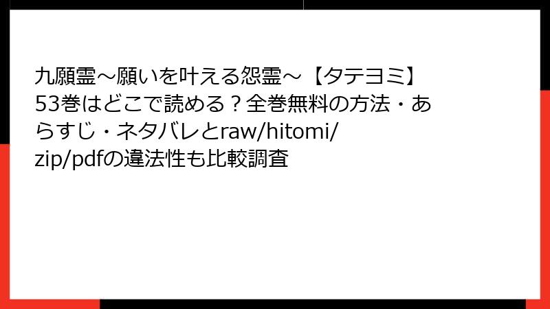- 九願霊~願いを叶える怨霊~【タテヨミ】 53巻 を海賊版サイトで読むリスク