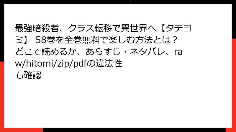 最強暗殺者、クラス転移で異世界へ【タテヨミ】 58巻を全巻無料で楽しむ方法とは?どこで読めるか、あらすじ・ネタバレ、raw/hitomi/zip/pdfの違法性も確認