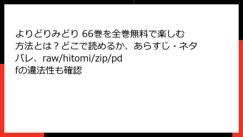 よりどりみどり 66巻を全巻無料で楽しむ方法とは?どこで読めるか、あらすじ・ネタバレ、raw/hitomi/zip/pdfの違法性も確認