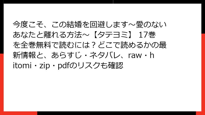 今度こそ、この結婚を回避します~愛のないあなたと離れる方法~【タテヨミ】 17巻を全巻無料で読むには?どこで読めるかの最新情報と、あらすじ・ネタバレ、raw・hitomi・zip・pdfのリスクも確認