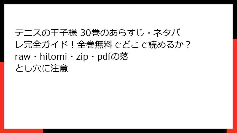 テニスの王子様 30巻のあらすじ・ネタバレ完全ガイド!全巻無料でどこで読めるか?raw・hitomi・zip・pdfの落とし穴に注意