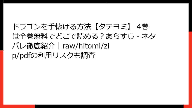 ドラゴンを手懐ける方法【タテヨミ】 4巻の配信状況