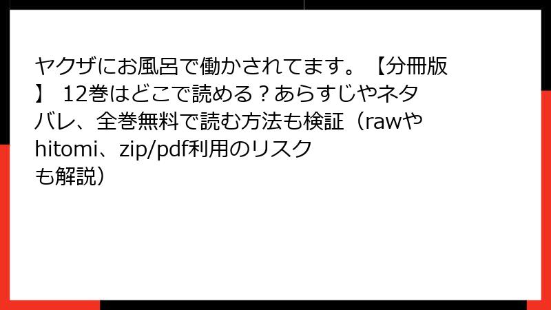 - ヤクザにお風呂で働かされてます。【分冊版】 12巻 あらすじ