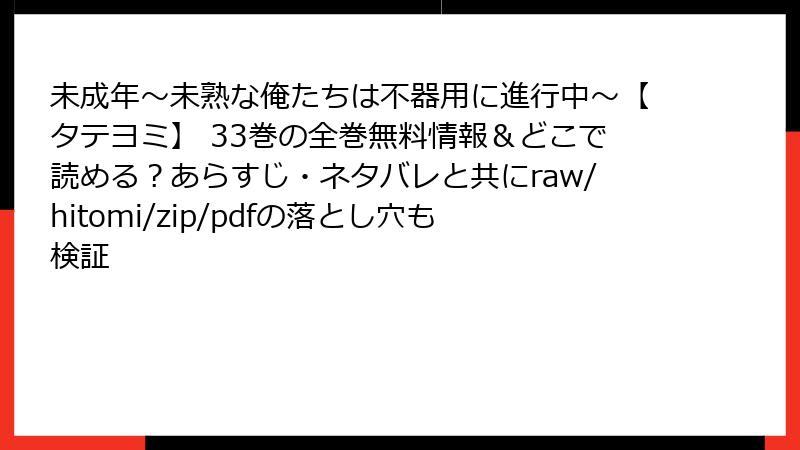 「未成年~未熟な俺たちは不器用に進行中~」は、不器用な青春恋愛が心を揺さぶる名作。33巻は関係の転機で、口コミでは「続きが気になる」との声が続出。電子書籍で気軽に読め、ドラマ版と合わせて楽しむ人も増えています。ピュアBLが好きな方、心理描写重視の方に特におすすめ。あなたの心に残る一冊になるはずです!