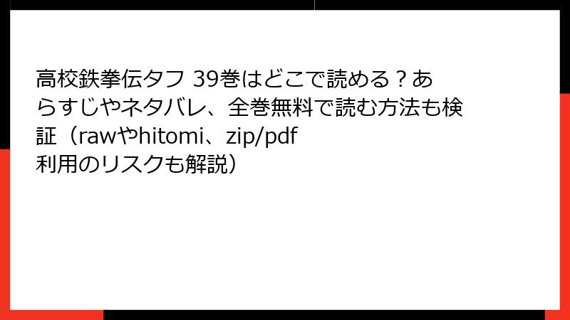 海賊版コンテンツはスキャン品質が悪く、ページ欠損や翻訳ミスが多いです。また、サイト自体が突然閉鎖されたり、アクセスできなくなることがあり、読みたい巻が途中で途切れる問題が発生します。