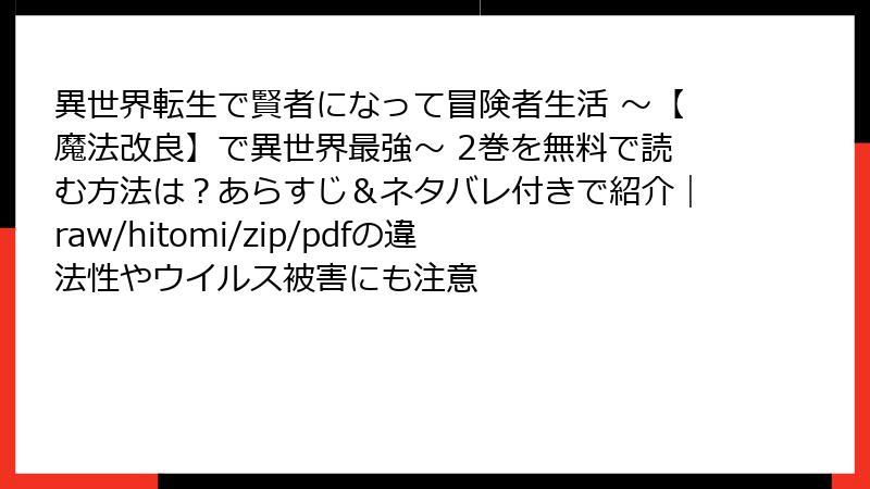- 異世界転生で賢者になって冒険者生活 ~【魔法改良】で異世界最強~ 2巻