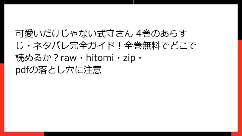 真木蛍五による人気ラブコメ漫画「可愛いだけじゃない式守さん」の第4巻は、主人公の和泉くんと式守さんの関係がさらに深まる内容で、多くの読者から高い評価を得ています。文化祭を舞台にしたエピソードを中心に、新キャラクターの狼谷さんが加わり、物語に新たな魅力を加えています。この記事では、さまざまなレビューサイトやSNSの口コミから、評判を詳しくまとめました。全体的に、キュンとするラブ要素とカッコいいヒロインの魅力が際立つ巻として好評です。