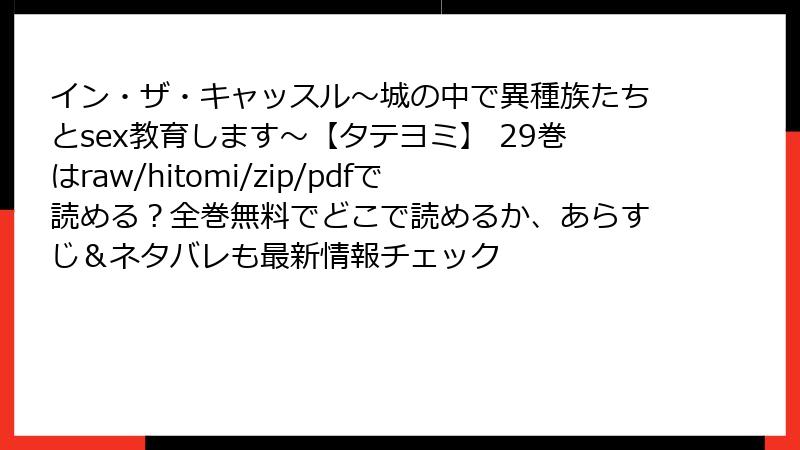 イン・ザ・キャッスル~城の中で異種族たちとsex教育します~【タテヨミ】 29巻はraw/hitomi/zip/pdfで読める?全巻無料でどこで読めるか、あらすじ&ネタバレも最新情報チェック