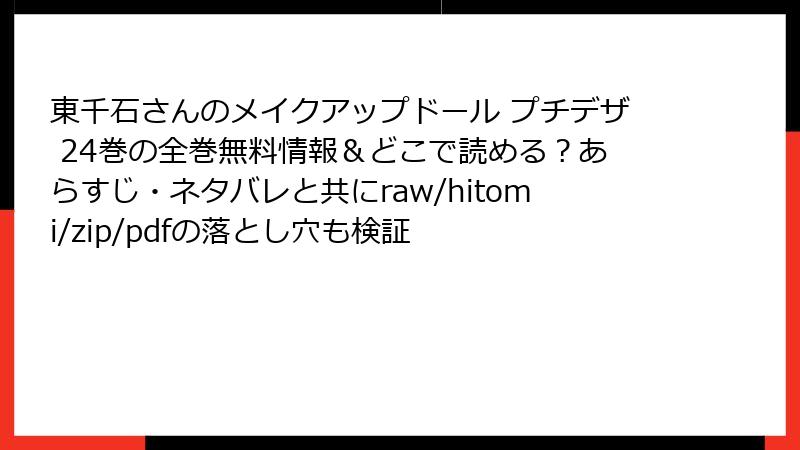 『東千石さんのメイクアップドール プチデザ』24巻は、美容と恋愛が融合した人気シリーズの最新巻です。この記事では、電子書籍版がどのプラットフォームで読めるかを詳しく解説します。指定されたサービスを中心に、配信の有無や特徴をまとめ、読みやすさを考慮した情報を提供します。配信状況は2026年1月現在の情報に基づいていますので、最新の確認をおすすめします。