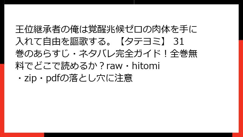 王位継承者の俺は覚醒兆候ゼロの肉体を手に入れて自由を謳歌する。【タテヨミ】 31巻のあらすじ・ネタバレ完全ガイド!全巻無料でどこで読めるか?raw・hitomi・zip・pdfの落とし穴に注意