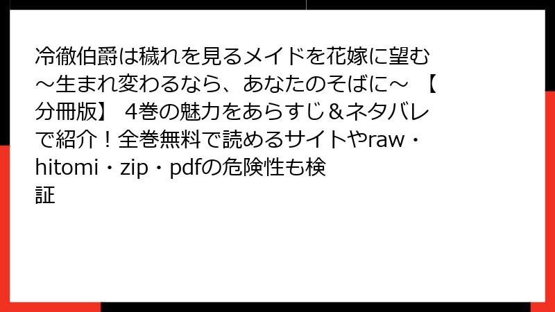 冷徹伯爵は穢れを見るメイドを花嫁に望む ~生まれ変わるなら、あなたのそばに~ 【分冊版】 4巻の魅力をあらすじ&ネタバレで紹介!全巻無料で読めるサイトやraw・hitomi・zip・pdfの危険性も検証
