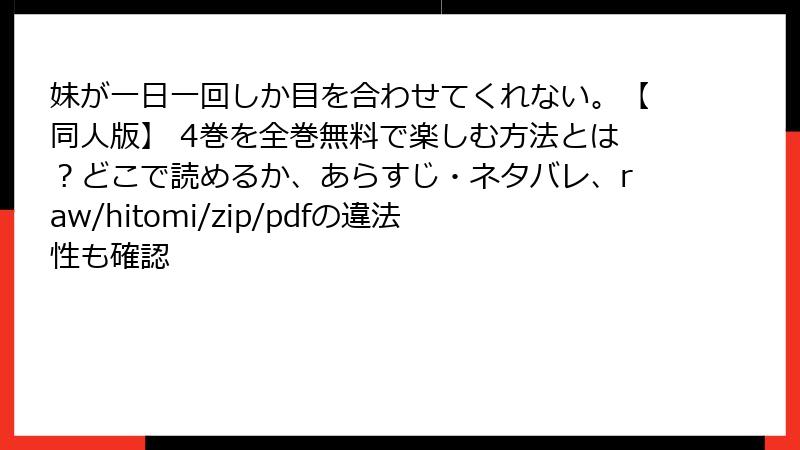 - 妹が一日一回しか目を合わせてくれない。【同人版】 4巻のネタバレ情報