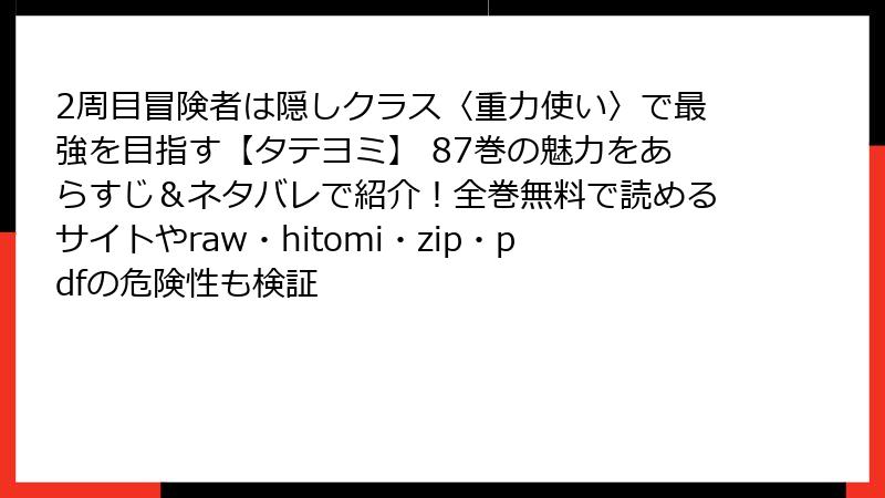 2周目冒険者は隠しクラス〈重力使い〉で最強を目指す【タテヨミ】 87巻の魅力をあらすじ&ネタバレで紹介!全巻無料で読めるサイトやraw・hitomi・zip・pdfの危険性も検証
