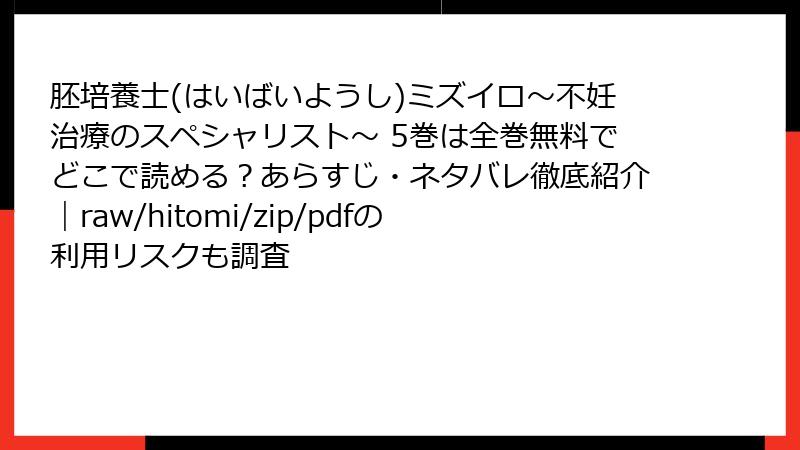 胚培養士(はいばいようし)ミズイロ~不妊治療のスペシャリスト~ 5巻は全巻無料でどこで読める?あらすじ・ネタバレ徹底紹介|raw/hitomi/zip/pdfの利用リスクも調査