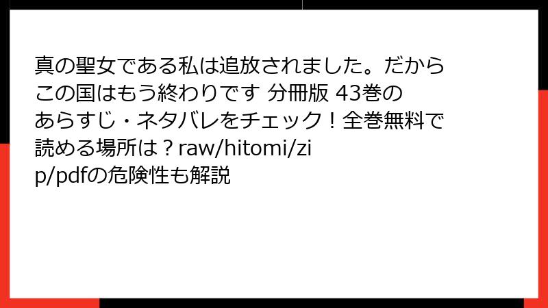 真の聖女である私は追放されました。だからこの国はもう終わりです 分冊版 43巻のあらすじ・ネタバレをチェック!全巻無料で読める場所は?raw/hitomi/zip/pdfの危険性も解説