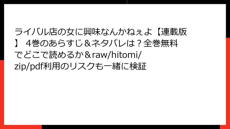 ライバル店の女に興味なんかねぇよ【連載版】 4巻のあらすじ&ネタバレは?全巻無料でどこで読めるか&raw/hitomi/zip/pdf利用のリスクも一緒に検証