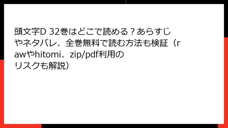 頭文字D 32巻はどこで読める?あらすじやネタバレ、全巻無料で読む方法も検証(rawやhitomi、zip/pdf利用のリスクも解説)