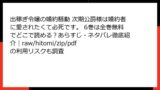 - この漫画・コミックを、raw/hitomi/zip/pdf/漫画バンクなどの海賊版サイトで読むことのリスク