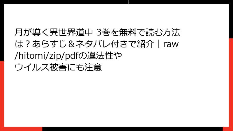 月が導く異世界道中 3巻を無料で読む方法は?あらすじ&ネタバレ付きで紹介|raw/hitomi/zip/pdfの違法性やウイルス被害にも注意
