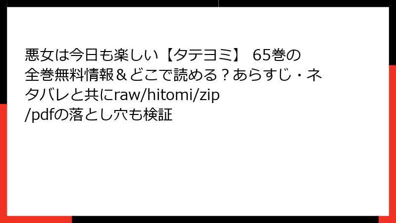 悪女は今日も楽しい【タテヨミ】 65巻の全巻無料情報&どこで読める?あらすじ・ネタバレと共にraw/hitomi/zip/pdfの落とし穴も検証