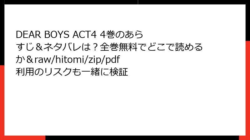 DEAR BOYS ACT4 4巻のあらすじ&ネタバレは?全巻無料でどこで読めるか&raw/hitomi/zip/pdf利用のリスクも一緒に検証