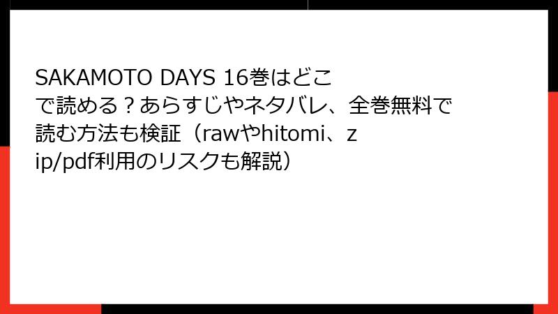 SAKAMOTO DAYS 16巻はどこで読める?あらすじやネタバレ、全巻無料で読む方法も検証(rawやhitomi、zip/pdf利用のリスクも解説)