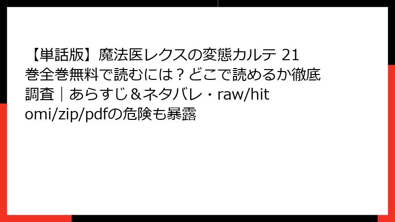 - 【単話版】魔法医レクスの変態カルテ 21巻のあらすじ