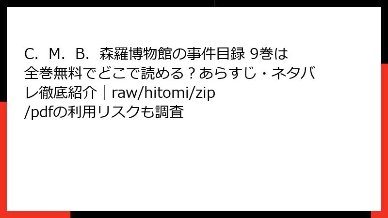 - C.M.B.森羅博物館の事件目録 9巻の電子書籍配信状況