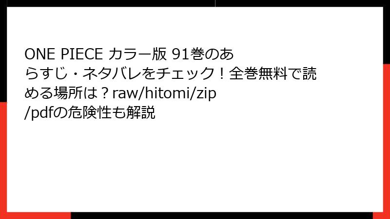 - ONE PIECE カラー版 91巻の電子書籍配信サイト