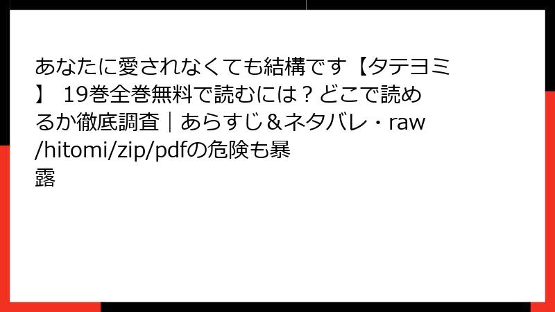 | あなたに愛されなくても結構です【タテヨミ】 19巻 | 配信中 | 配信なし | 配信なし | 配信なし | 配信なし | 配信なし | 配信中 | 配信中 |