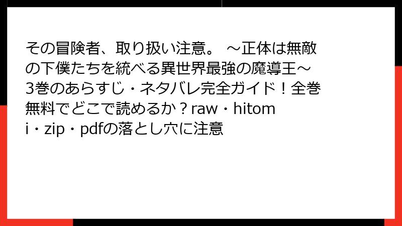 その冒険者、取り扱い注意。 ~正体は無敵の下僕たちを統べる異世界最強の魔導王~ 3巻のあらすじ・ネタバレ完全ガイド!全巻無料でどこで読めるか?raw・hitomi・zip・pdfの落とし穴に注意