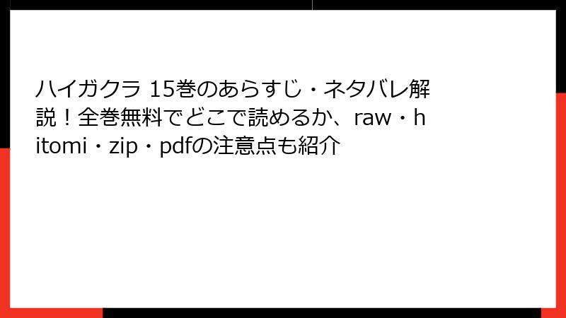 ハイガクラ 15巻のあらすじ・ネタバレ解説!全巻無料でどこで読めるか、raw・hitomi・zip・pdfの注意点も紹介