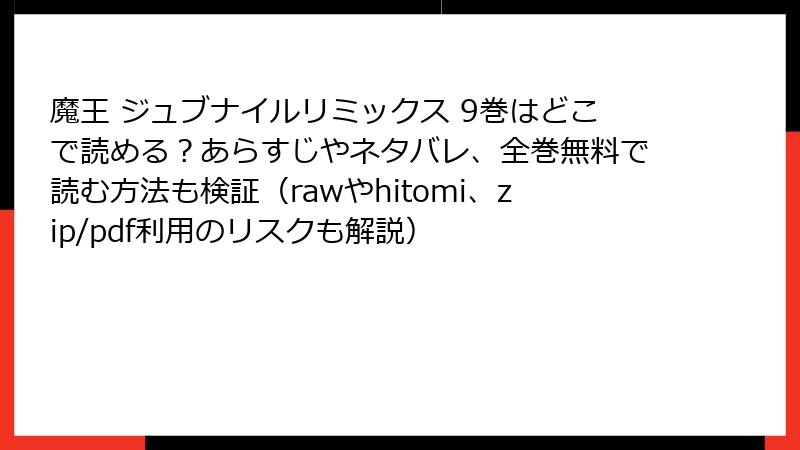 - 魔王 ジュブナイルリミックス 9巻 あらすじ