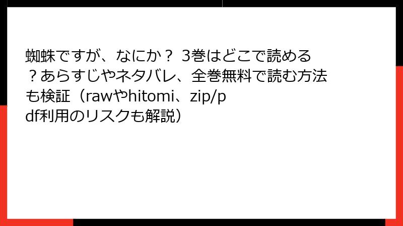 蜘蛛ですが、なにか? 3巻はどこで読める?あらすじやネタバレ、全巻無料で読む方法も検証(rawやhitomi、zip/pdf利用のリスクも解説)