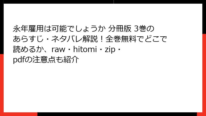 永年雇用は可能でしょうか 分冊版 3巻のあらすじ・ネタバレ解説!全巻無料でどこで読めるか、raw・hitomi・zip・pdfの注意点も紹介